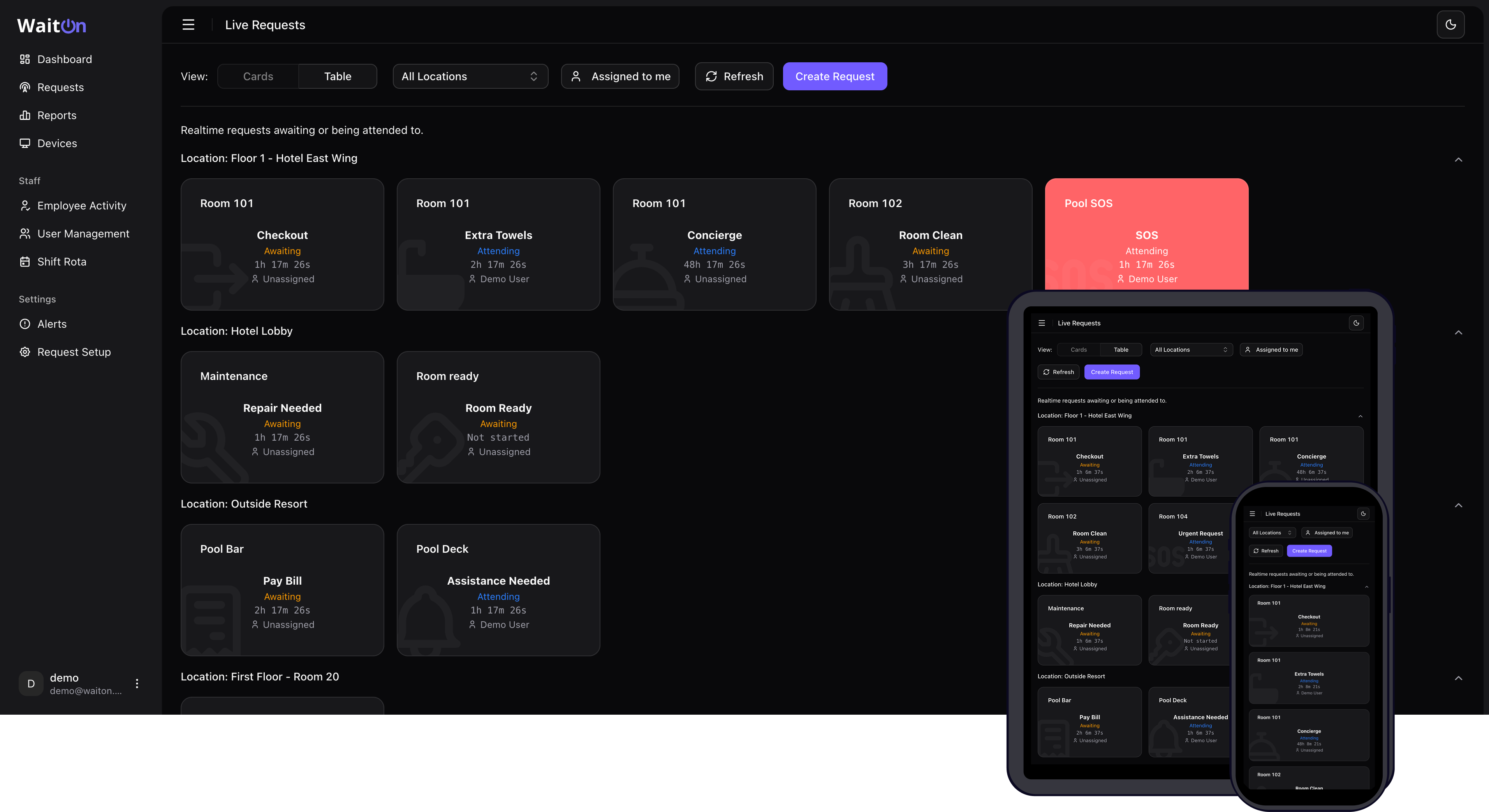 - Real-time requests—guest calls for service appear instantly so nothing sits in a queue unseen.